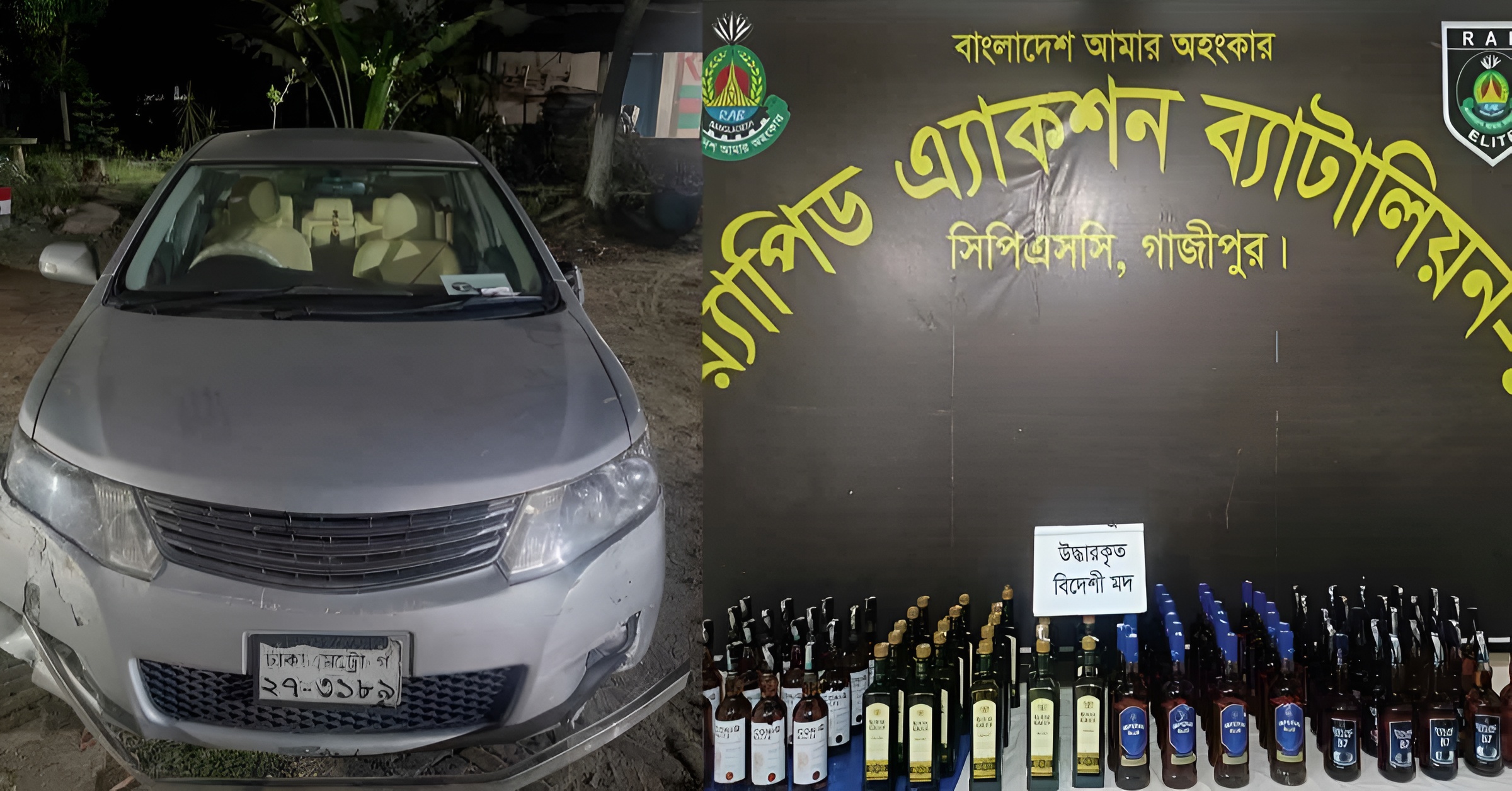 র্যাব কর্মকর্তা জানান, গোপন সংবাদ ও র্যাব সদর দপ্তরের গোয়েন্দা তথ্যের ভিত্তিতে জানা যায়, ময়মনসিংহ থেকে একটি প্রাইভেটকারে (ঢাকা-মেট্রো-গ-২৭-৩১৮৯) বিদেশী মদের একটি বড় চালান নিয়ে গাজীপুর চৌরাস্তার দিকে আসছে। এই খবরের ভিত্তিতে গেল রাত ১১টা ৫০ মিনিটে সদর থানাধীন দক্ষিণ সালনা এলাকায় গাজীপুর কৃষি বিশ্ববিদ্যালয়ের গেটের সামনে ঢাকা-ময়মনসিংহ মহাসড়কে চেকপোস্ট বসায় র্যাব।
