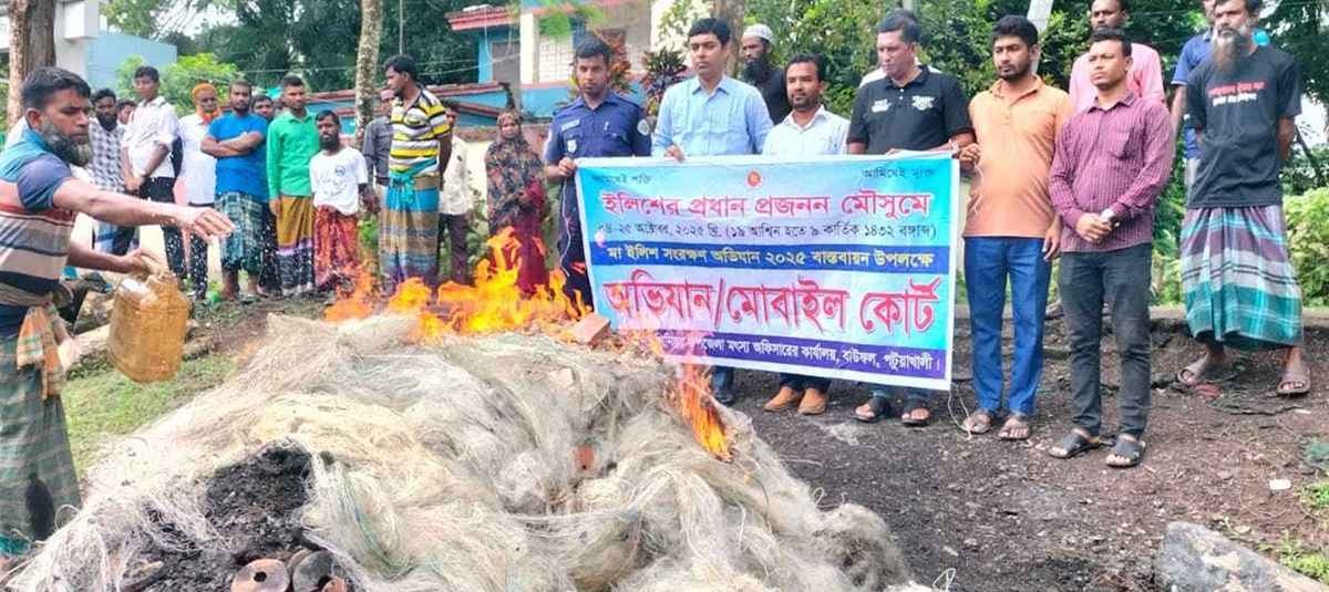 পটুয়াখালীর পায়রা-তেঁতুলিয়া নদীতে অভিযান ; আটক ২৪ জেলে